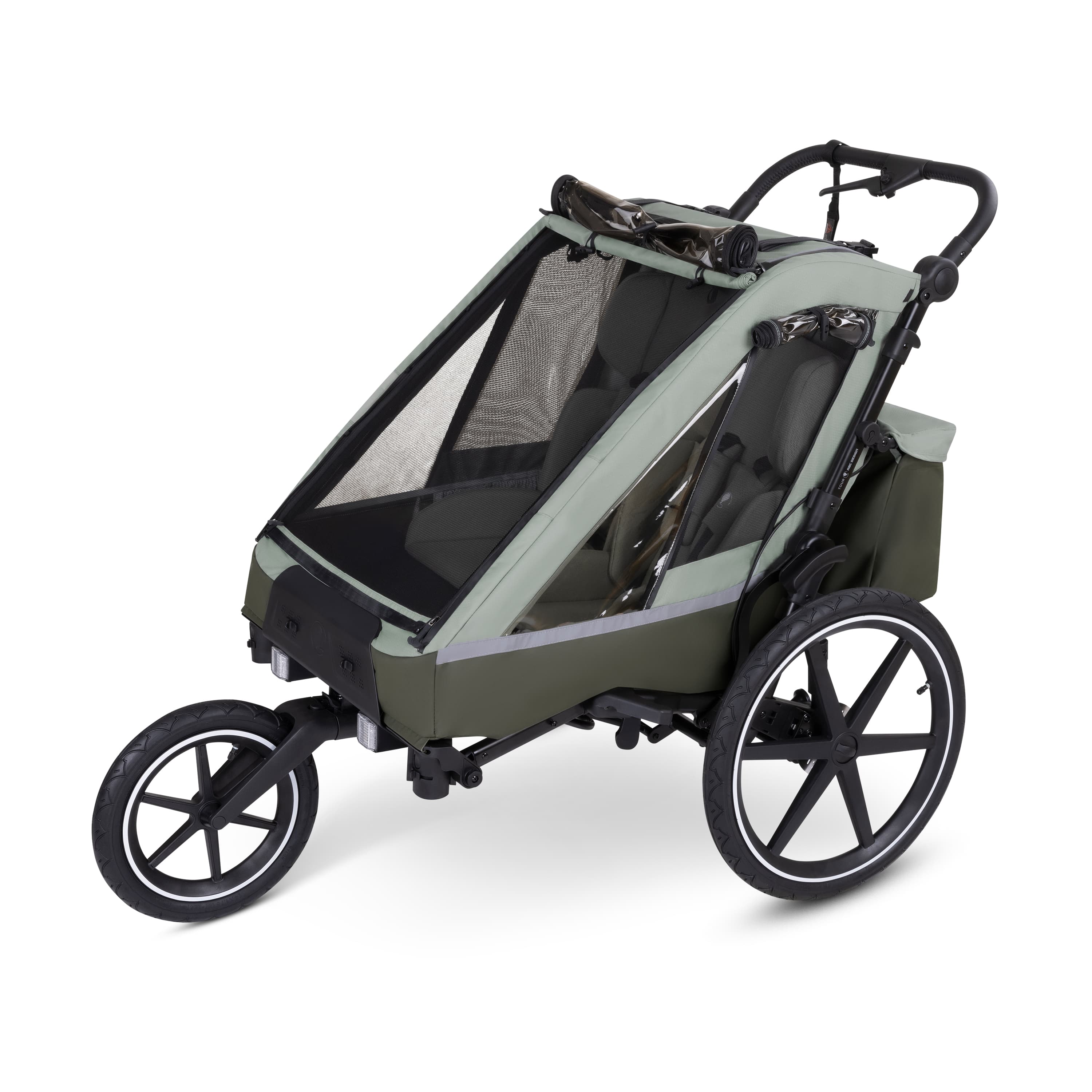 v běžecký kočárek. Jednoduše sklopíte přední kola a jedním kliknutím