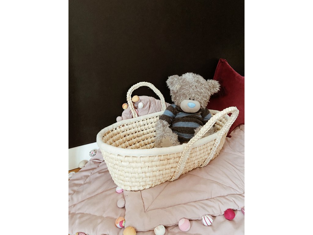Oblíbený Mojžíšův košík nyní také ve verzi pro panenky! Lehoučký, ale prostorný košík vhodný pro hraní s panenkami, plyšáky a pro ukládání hraček. Vyrobený ručně ze sušených kukuřičných slupek.