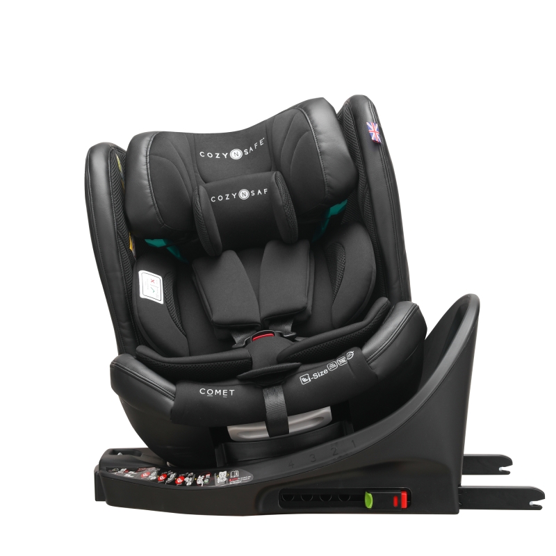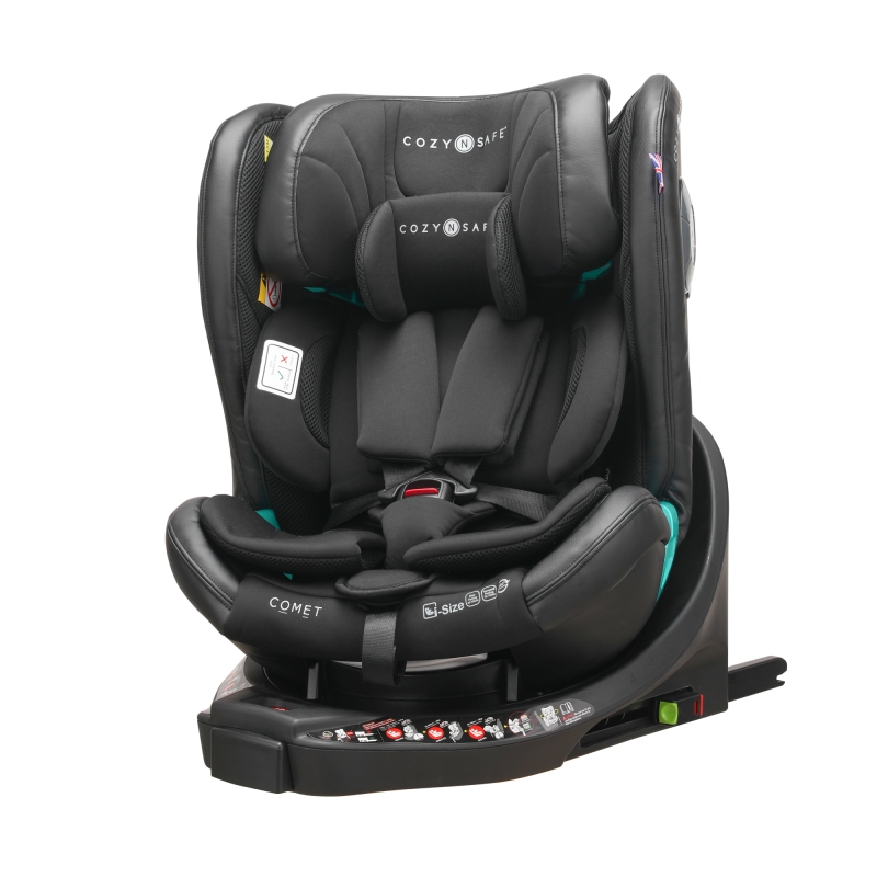 Cozy N Safe Comet i-Size 360° Univerzální použití: od narození až do 12 let. Funkční design Přechody mezi polohami: Snadná změna polohy díky otočné funkci 360°. Bezpečnost a komfort: Více poloh sklopení, pokročilé bezpečnostní prvky Stylový vzhled: Měkký a elegantní materiál vnějšího potahu Víceúčelová konverze: Možnost použití jako zadní autosedačka, přední autosedačka a podsedák s vysokou zádovou opěrkou. Snadná instalace: ISOFIX se stabilizační nohou / upevnění pomocí bezpečnostního pásu. 5bodové bezpečnostní popruhy Odolná konstrukce, prodyšné textilie Polohování Nastavitelná opěrka hlavy: až 18 pozic Pohodlné polstrování Snadná údržba: Plně odnímatelné potahy