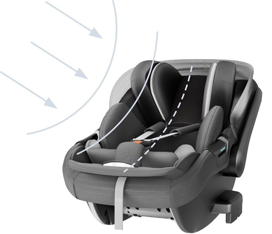 snadno se přenáší a upevňuje ve vozidle pásy nebo do ISOFIXové báze,