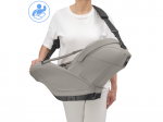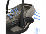 Manipulace s měkkým nosičem a skořepinou je intuitivní a bezpečná. Při správném usazení měkkého nosiče do skořepiny pomáhají indikátory, které potvrzují správné upevnění. Praktická je také funkce Easy-in, kdy po odepnutí zůstávají ramenní části pásů otevřené a dítě lze do sedačky vložit rychleji a bez zbytečného zápasu.