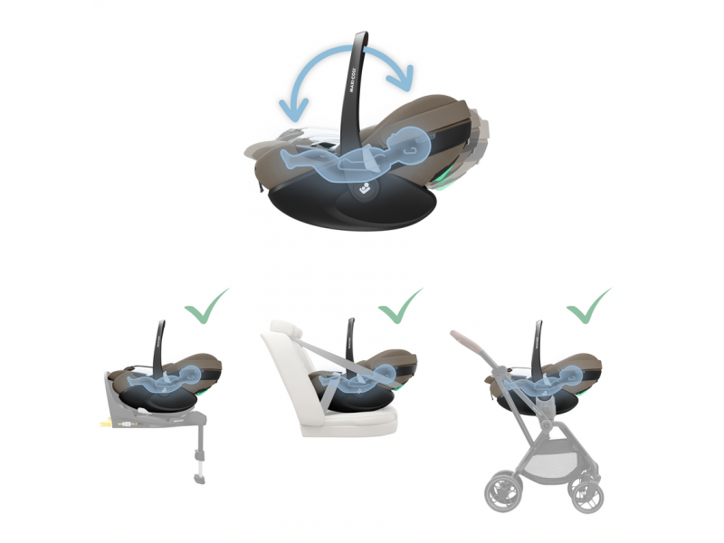 Dětská autosedačka Maxi-Cosi ****Pebble 360 Pro 2 je vhodná pro děti od narození do cca 18 měsíců (0–13 kg, od 40 do 87 cm). Autosedačka vyniká možností úplného lehu pro zdravé a přirozené spaní miminka v autě i při použití s podvozkem kočárku.
