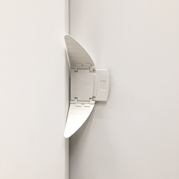 Bezpečnostní uzávěr posuvných dveří. Bezpečnostní uzávěr chrání proti otevření posuvných dveří. Využijete jej u komod, skříní nebo vitrín s posuvnými dveřmi. Biodegradabilní balení.