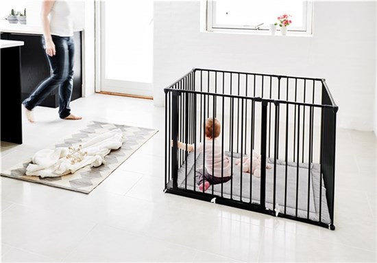 Balení obsahuje měkkou (prací na 40°C) hrací matraci s vysokými okraji. Certifikace Öko-tex. materiál 100% bavlna, náplň z netkané textilie 100% polyester. – Ohyby jsou flexibilní, proto mohou být všechny díly použity mnoha různými způsoby. Pokud dítě už nějakou dobu ohrádku nepoužívá, je možné ji snadno přeměnit na bezpečnostní bariéru, která se skvěle hodí okolo krbu, do širokých a nepravidelných dveří a schodišť nebo jako rozdělovač pokoje. Může být prodloužena libovolným počtem velkých (72cm) a malých(33cm) dílů, které se dodávají samostatně.