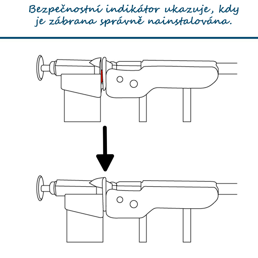 Tlakově upevněná (bez vrtání) otvorová bezpečnostní zábrana s indikátorem tlaku. Je určena pro otvory v rozměru 73–80 cm, s prodlouženími až do 120 cm. Využijete ji do dveří a na schody, nesmí se používat do oken. Její velkou výhodou je absence nutnosti vrtání do stěn nebo zárubní. Přitom díky indikátoru máme jistotu, že je pevně nainstalována. Otevítá se na obě strany a lze ji ovládat jen jednou rukou.