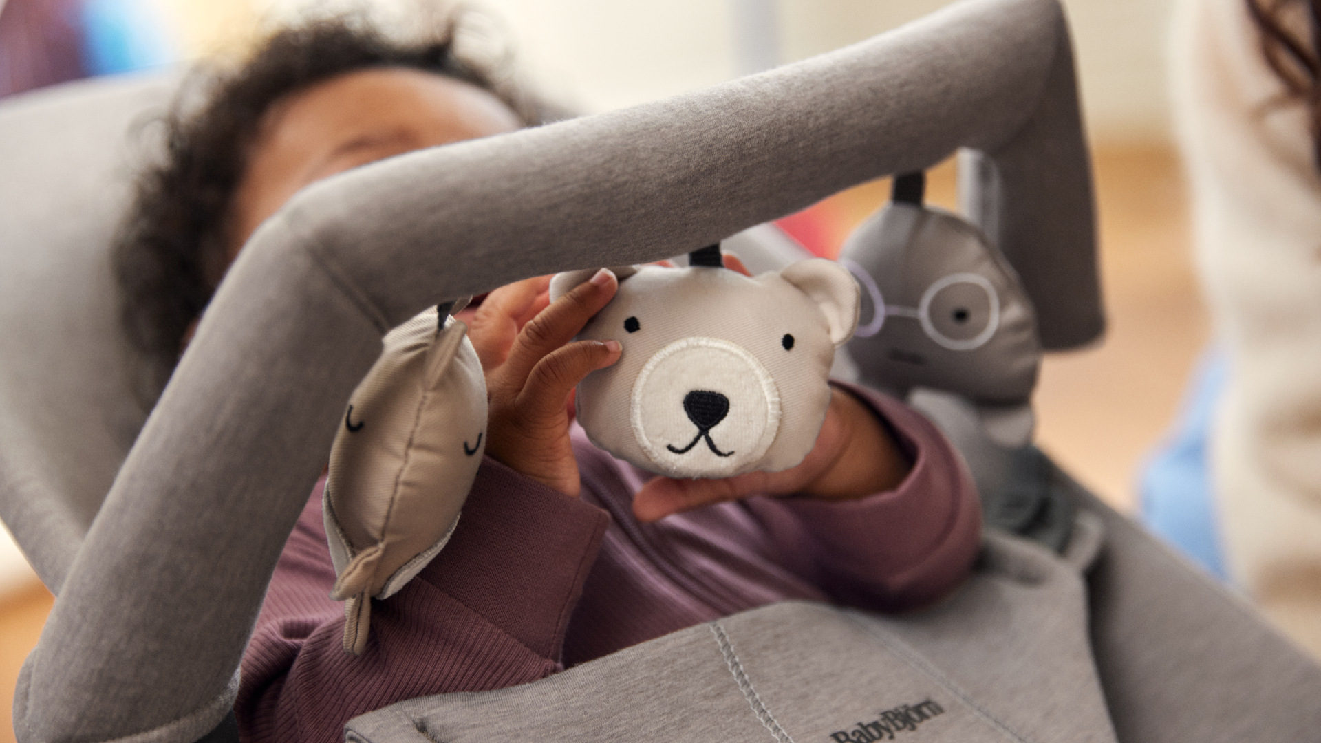 Krásná měkká zvířátka, která se houpou a chrastí, když se houpe lehátko. Hračka je vyrobena z měkké látky, která se dá lehce sundat a vyprat na 30 st. Hračka podněcuje dítě ke hře a odpočinek v lehátku díky ní získá nový, zábavnější rozměr.