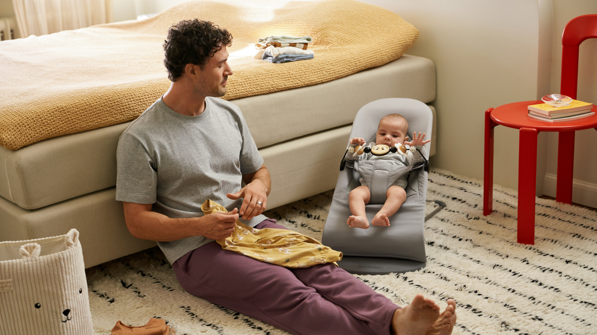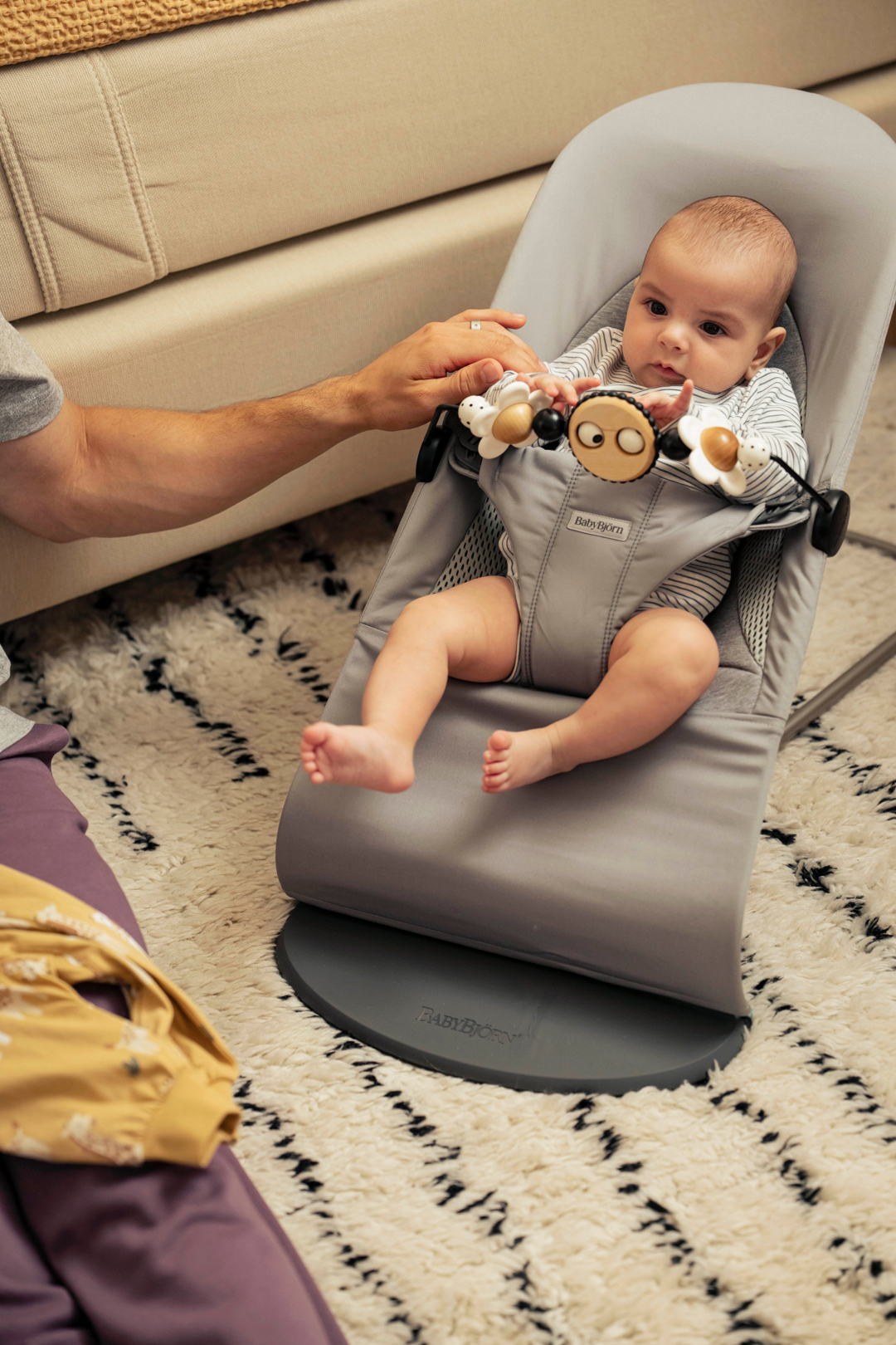 Houpání, které rozvíjí motorické schopnosti a rovnováhu – miminka milují houpání! Děťátko se velmi rychle naučí, jak se díky svým vlastním pohybům může v lehátku houpat a rozvíjí tak motorické schopnosti a rovnováhu tou nejpřirozenější cestou.Lehátka Babybjorn nefungují na baterie, ale na pohyb.
