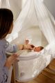 Zútulní kolébku jemnými nebesy a příjemně ztlumí světlo v kolébce .