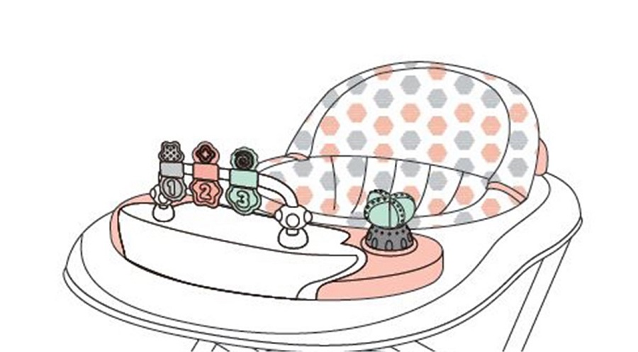 Celé chodítko je výškově nastavitelné ve 3 polohách, takže se přizpůsobí délce nohou dítěte. Když je potřeba chodítko uložit, dospělí ho mohou snadno sklopit cvaknutím na spodní straně, aby zabíralo méně místa. Herní stůl je snadno odnímatelný a lze jej čistit vlhkým hadříkem.
