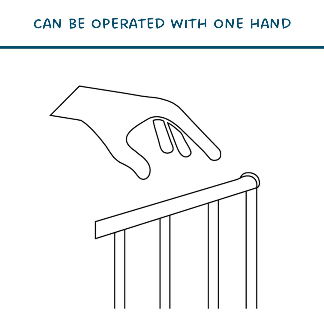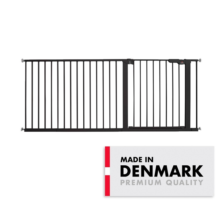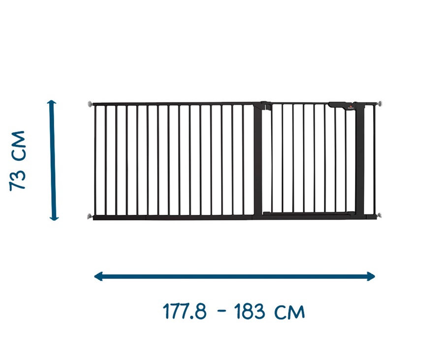 Tato bezpečnostní zábrana BabyDan Premier v černé barvě je ideální pro extra široké dveře, chodby a vstupní prostory v domácnosti od 177,8 cm do 183 cm. Zábrana se upevňuje tlakově, takže se vyhnete vrtání otvorů do zdi. Místo toho můžete použít pouze dodané nástěnné úchyty s páskou. Bezpečnostní zábrana se velmi snadno sestavuje a nastavuje a a veškeré potřebné nářadí je součástí balení. Můžete také použít naši aplikaci Onbox, která ukazuje instalaci mřížky krok za krokem.