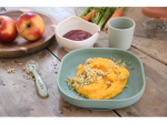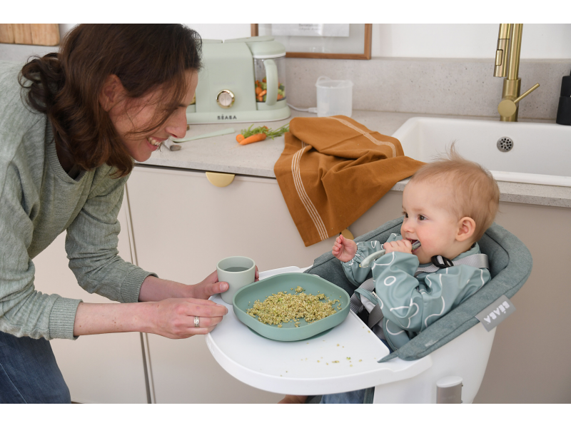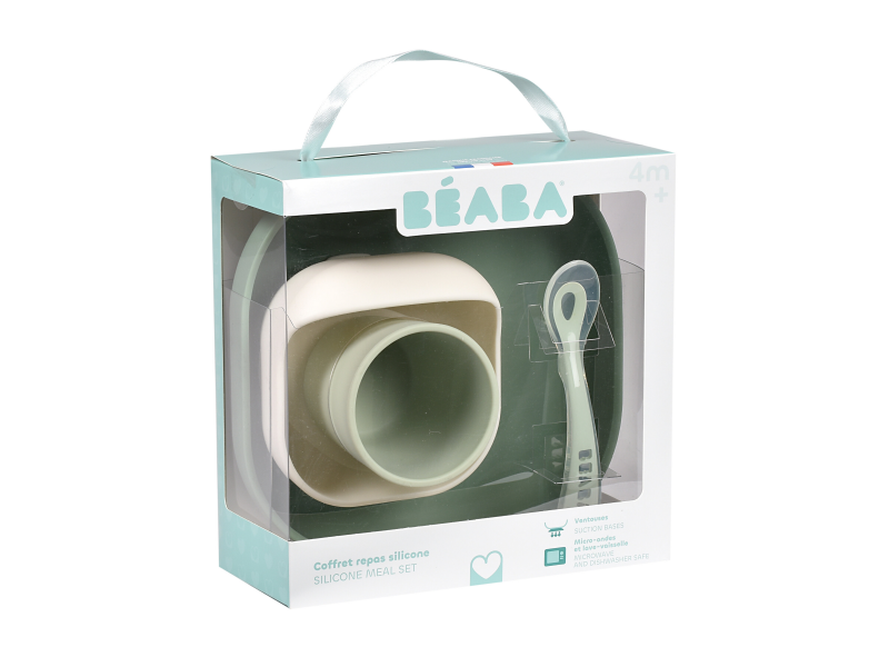 Sada talíře, misky, kelímku na pití a lžičky z vysoce kvalitního silikonu je ideální pro první samostatné krmení. Přísavka u misky a talíře umožňuje uchycení ke stolu nebo pultu jídelní židličky. Ergonomický tvar usnadňuje nabírání příkrmu.