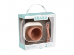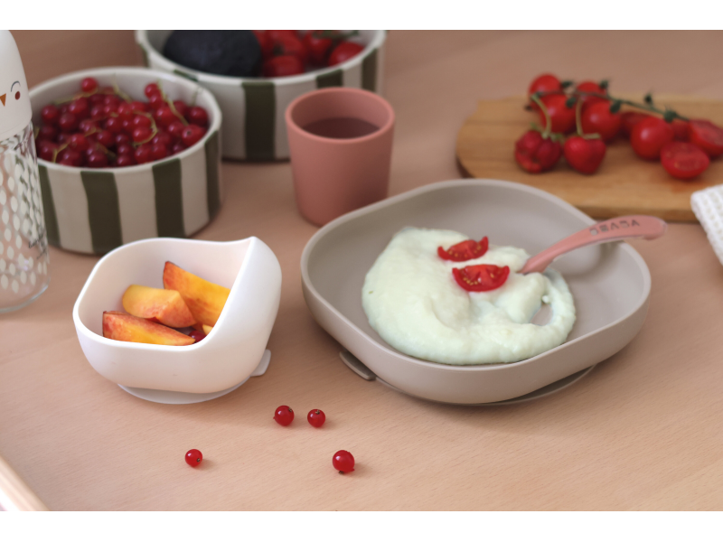 Sada talíře, misky, kelímku na pití a lžičky z vysoce kvalitního silikonu je ideální pro první samostatné krmení. Přísavka u misky a talíře umožňuje uchycení ke stolu nebo pultu jídelní židličky. Ergonomický tvar usnadňuje nabírání příkrmu.