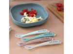 Silikonové lžičky pro nejmenší jsou šetrné k citlivým dětským dásním a navržené pro hladký přechod ze savičky na lžičku. Dlouhá rukojeť usnadňuje rodiči nabírání z misky i skleničky bez zašpinění rukou.