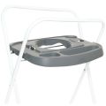 Koupání miminka patří k nejoblíbenějším večerním rituálům. Pokud máte stojan nemusí se nutně odehrávat v koupelně. Někdy se pěkně protáhne a tak je důležitá správná výška vaničky pro správné držení těla a také mít všechno na dosah a nemuset od koupaného dítěte odcházet. Stojan Click od Bébé-jou je proto vybaven integrovaným držákem ručníku nebo župánku a místem pro položení mýdla nebo koupacích gelů a šampónů. Nikdy nenechávejte dítě při koupání bez dozoru.