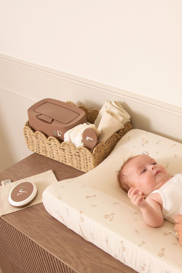 Na měkkém mušelínovém návleku na přebalovací podložce se při této masáži cítí dítě v teple a jako v bavlnce. Často při tom usne. Návlek sedí na většinu 2-stranných přebalovacích podložek , samozřejmě nejlépe ladí s originální podložkou od Bébé-jou. Návlek na podložku je vyroben z materiálu 30% bavlna/70% bambus odpovídajícím přísným ustanovením „OKO-TEX Standart 100“.