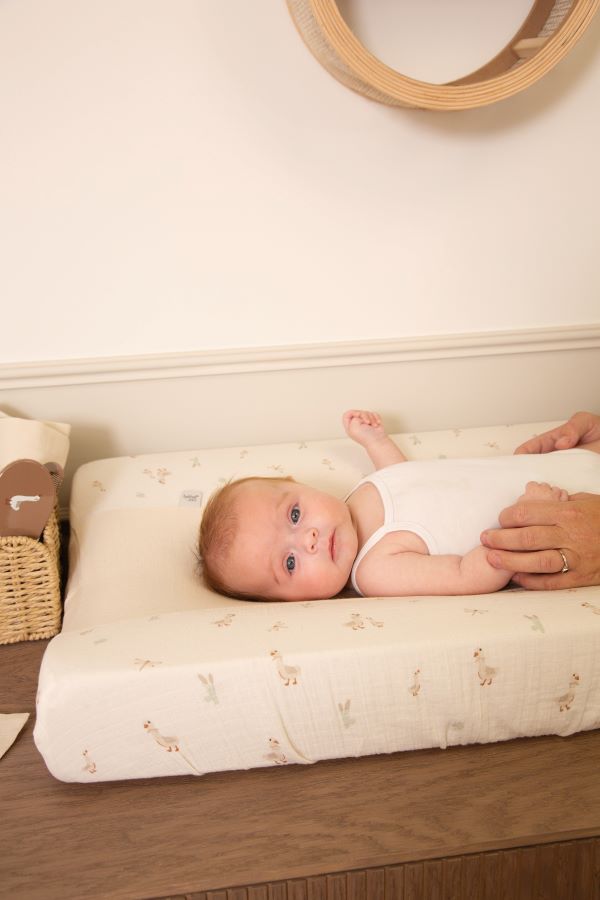 Komfortní dvoustranná podložka. Přebalovací podložka vám usnadní přebalování vašeho maličkého. Je omyvatelná a tím i antialergická (již žádný prach), měkoučká a tepelně izolační. Nikdy nenechávejte dítě na přebalovací podložce bez dozoru. Pokud je umístěna na komodě či stole, hrozí nebezpečí pádu. Neobsahuje ftaláty. Testováno dle norem TÜV.