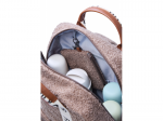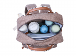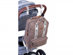 Součástí batohu je přebalovací podložka a termoizolační kapsy na láhev. Přehlednou organizaci obsahu batohu zaručuje množství vnitřních i vnějších kapes a úchytů. Díky speciální kapse pro vlhčené ubrousky jsou ubrousky vždy okamžitě po ruce připravené k použití. Úchyty na kočárek umožňují zavěšení batohu na rukojeť kočárku, úchyt na vytahovací rukojeť kufru vám usnadní cestování během dovolené.