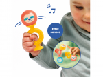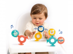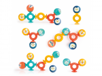 Sada chrastítek s přísavkami Smack Pop je originální hračka pro děti od 10 měsíců, která kombinuje barevné chrasticí kuličky a silikonové kroužky s přísavkami. Dítě může jednotlivé díly spojovat a vytvářet vlastní kombinace – na jídelním pultu, na stole i ve vaně. Přísavky drží pevně na hladkých površích, takže hračka zůstává na místě a dítě se může soustředit na objevování. Při zatřesení kuličky s motivy zvířátek vydávají zábavné zvuky, které podporují smyslové vnímání a udržují pozornost. Hračka pomáhá rozvíjet jemnou motoriku i tvořivost dítěte.