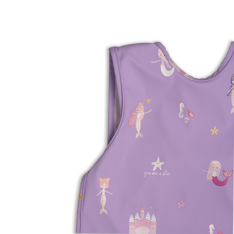 Tento voděodolný bryndáček bez rukávů má střih, který brání přetahování, takže vaše dítě během jídla bezpečně ochrání. Má zadní zapínání pro rychlý přístup, které je dostatečně jemné k pokožce vašeho dítěte.