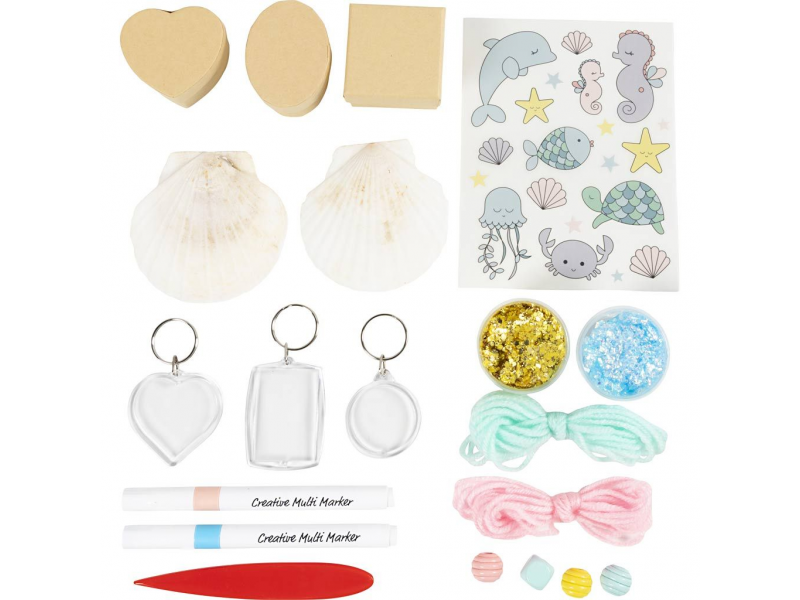 Kreativní sada s mořskou tematikou, která dětem umožní vytvářet vlastní třpytivé poklady zdobené motivy z hlubin oceánu. Ideální pro malé umělce, kteří milují barvy, tvoření a mořské motivy plné fantazie.
