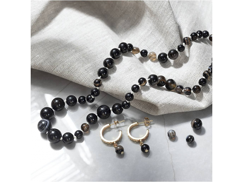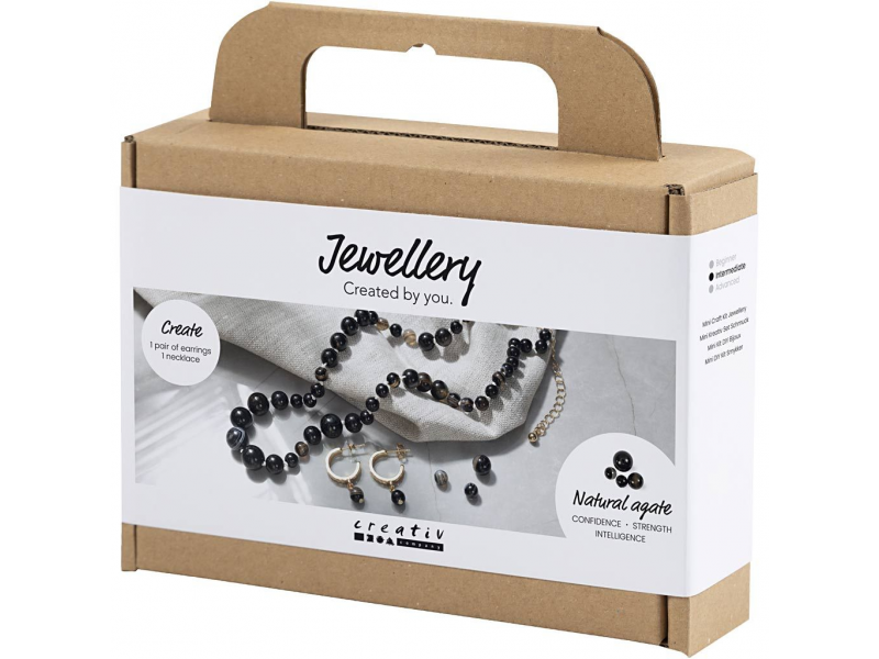 Ručně vyrobené šperky s hlubokým významem. Tato kreativní sada vám umožní vytvořit náhrdelník a pár náušnic s přírodními korálky z achátu – polodrahokamu známého svým mystickým vrstveným vzhledem a posilující energií.