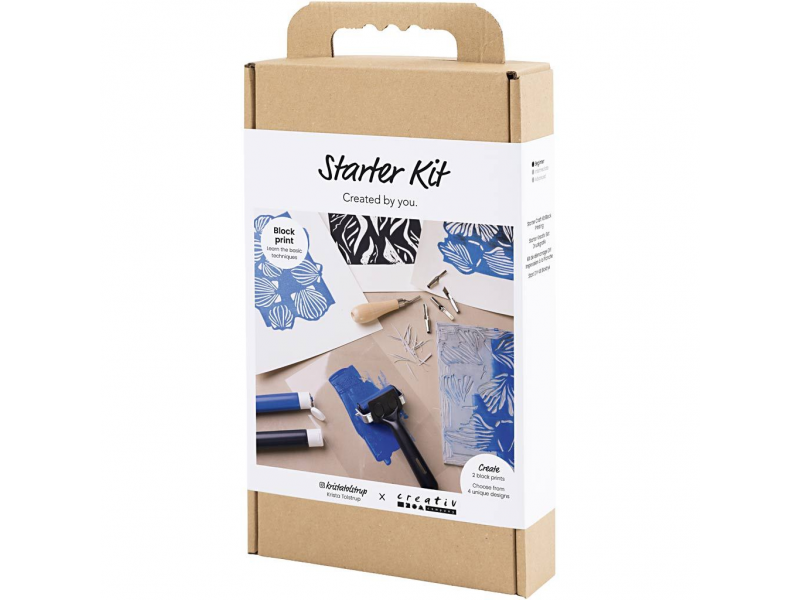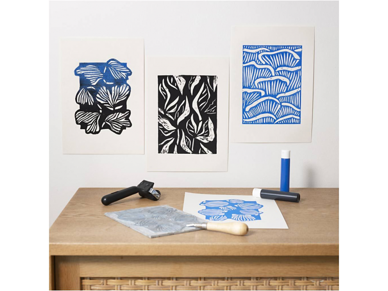 Objevte kouzlo ručního tisku a vytvořte si vlastní umělecká díla metodou linorytu! Tato kreativní sada vznikla ve spolupráci s designérkou Kristou Tolstrup a obsahuje vše potřebné k výrobě dvou výrazných grafických tisků v modročerných odstínech.