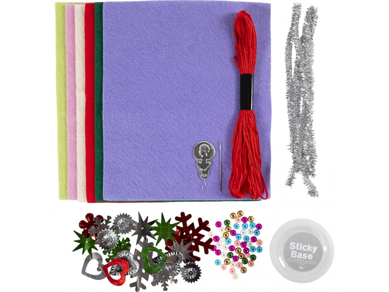 Barevná a kreativní sada, která dětem i dospělým umožní vytvořit si vlastní vánoční ozdoby z plsti, korálků a flitrů. Ideální tvoření pro dlouhé zimní večery – jednoduché, zábavné a s kouzelným výsledkem, který rozzáří každý vánoční stromek.