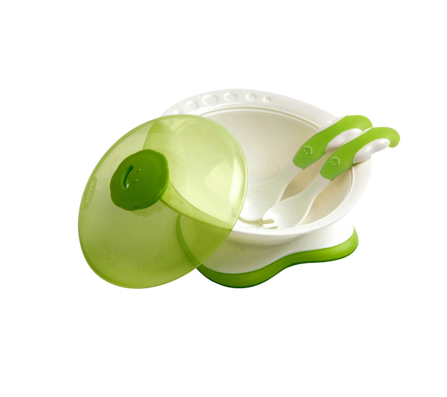 Mírně nakloněný usnadňuje dětem jídlo. Ale pokud jsou to gurmáni, kteří si jídlo chtějí dlouho vychutnávat, oceníte otvor pro únik páry ve víku, který umožňuje ohřívání v mikrovlnné troubě i s víkem, což brání vysoušení obsahu. Tvar příborů je vhodný pro malé ruce dětí. Kapacita 350 ml.
