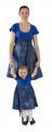 Živůtek je vyrobený z jednobarevné viskózy a sukňová část z bohatě vyšívané džínoviny.