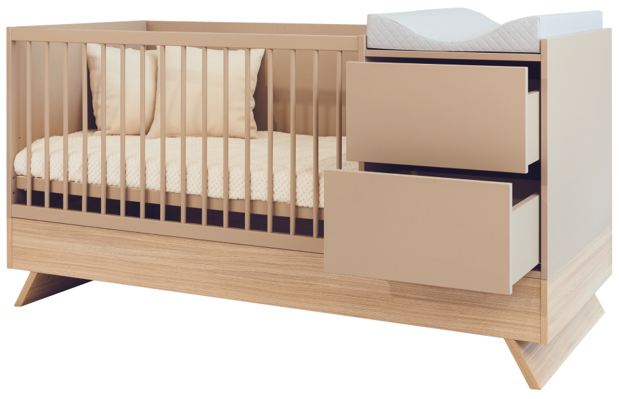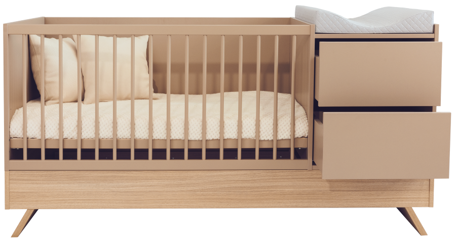 Přebalovací plocha o rozměrech 48 × 70 cm je dokonale dimenzovaná tak, aby každodenní výměna plenek byla plynulá a snadná, a kombi postýlka se stala vaším spolehlivým společníkem od prvního dne. Pod přebalovací plochou najdete dvě prostorné zásuvky s dotykovým otvíráním(každá o objemu 40 litrů), které mají všechny nezbytnosti po ruce a jsou úhledně uspořádané.