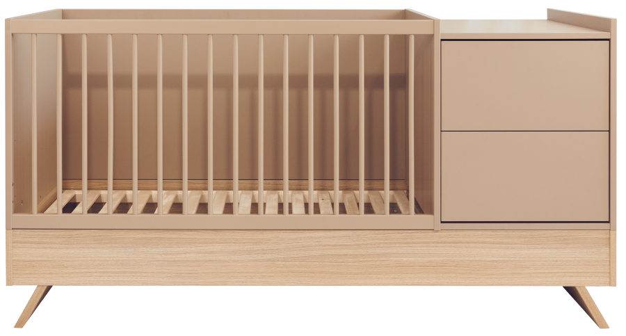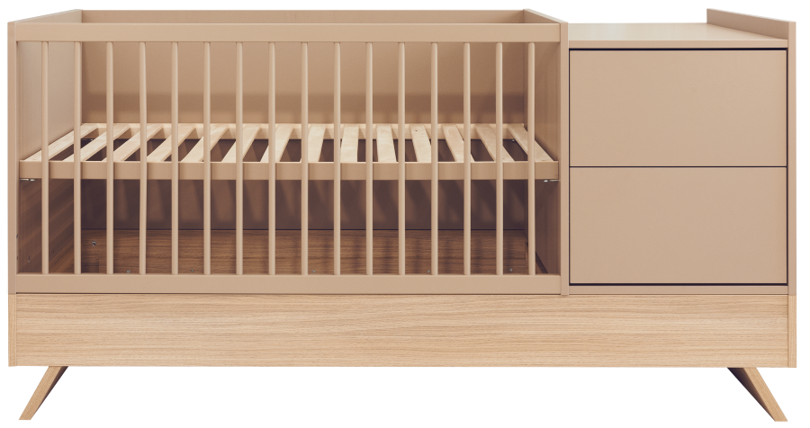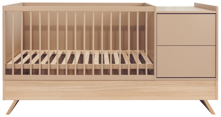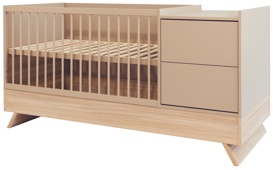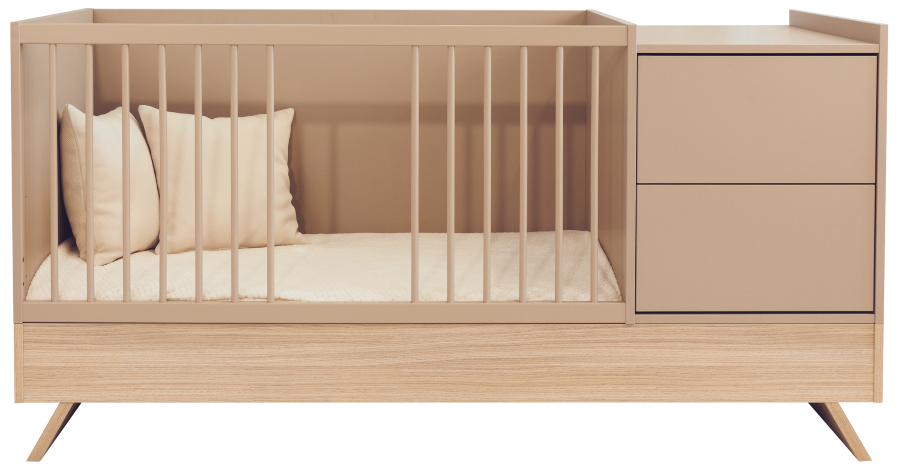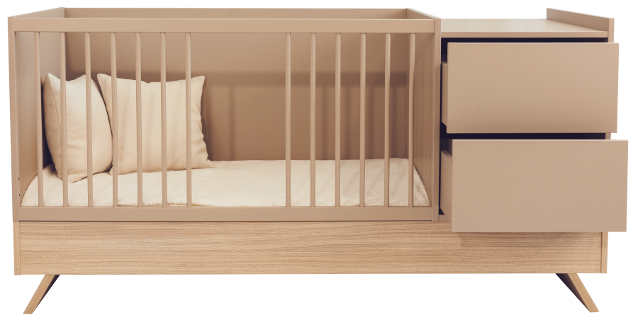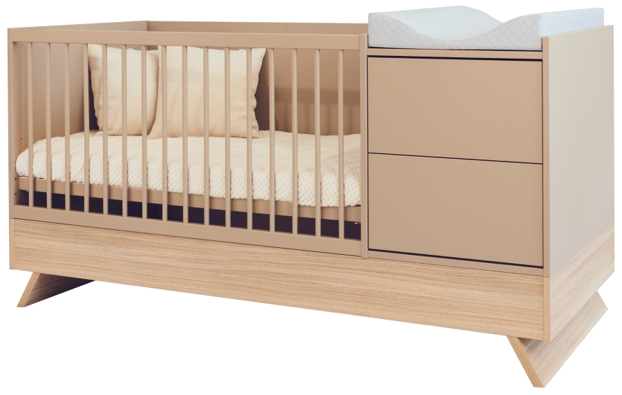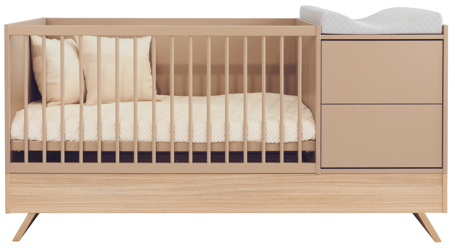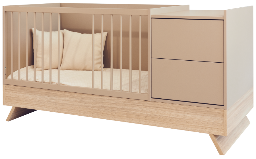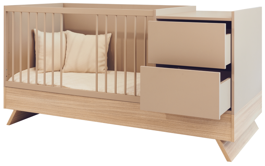 Nejnovější člen kolekce Sienna zaujme nejen svým poutavým designem, ale také rafinovanou, promyšlenou funkčností. Tato multifunkční postýlka, která stojí na elegantních nohách z dubového dřeva a je spárována s panelem v barvě kapučína, vytváří dokonalou rovnováhu mezi přírodním šarmem a moderním stylem.