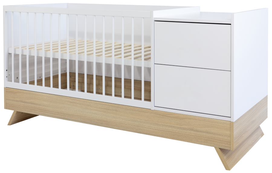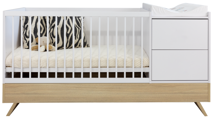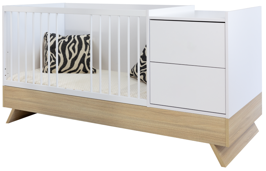Díky funkci 3 v 1 je navržena tak, aby rostla s vaším dítětem: začíná jako dětská postýlka s komodou, pak se snadno změní na větší dětskou postel a praktickou skří****ňku – zůstane milovanou částí dětského pokoje po mnoho dalších let.