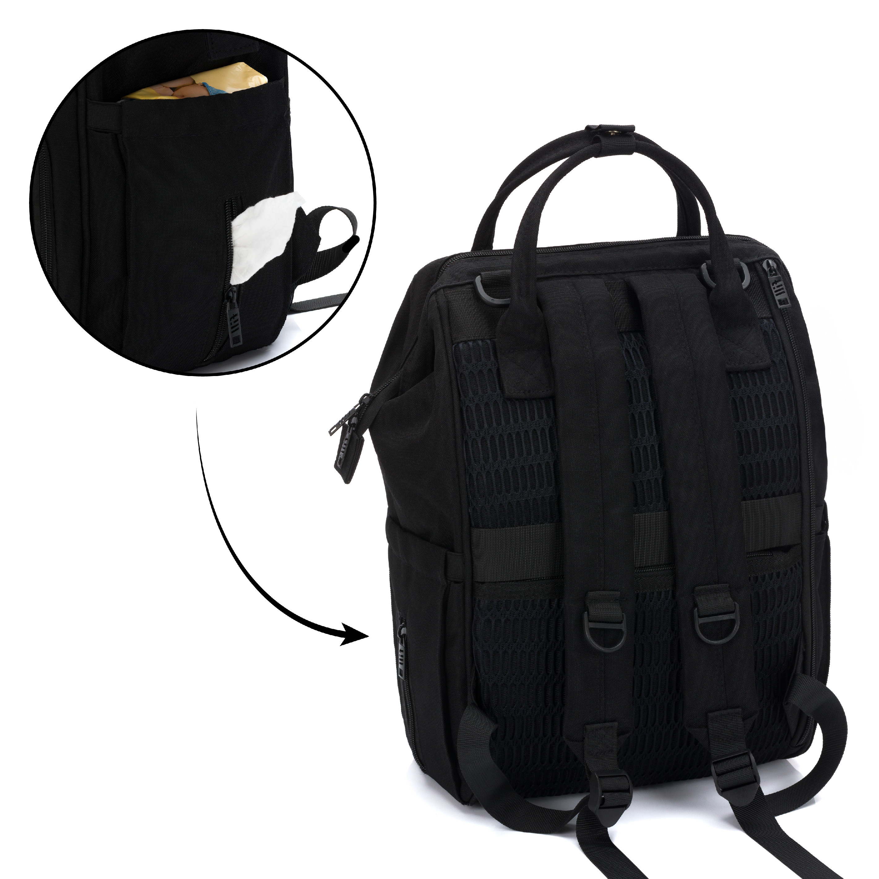 Zvláště praktické jsou snadno přístupné vnější kapsy, do kterých se dostanete bez nutnosti batoh sundávat. Chytré rozmístění kapes zajišťuje perfektní organizaci i na cestách. Integrované termoizolační přihrádky jsou ideální pro uložení lahví a pomáhají udržet nápoje nebo dětskou stravu déle teplé či studené. Velký přední zip umožňuje rychlý přístup k nejdůležitějším věcem bez nutnosti otevírat celý batoh.