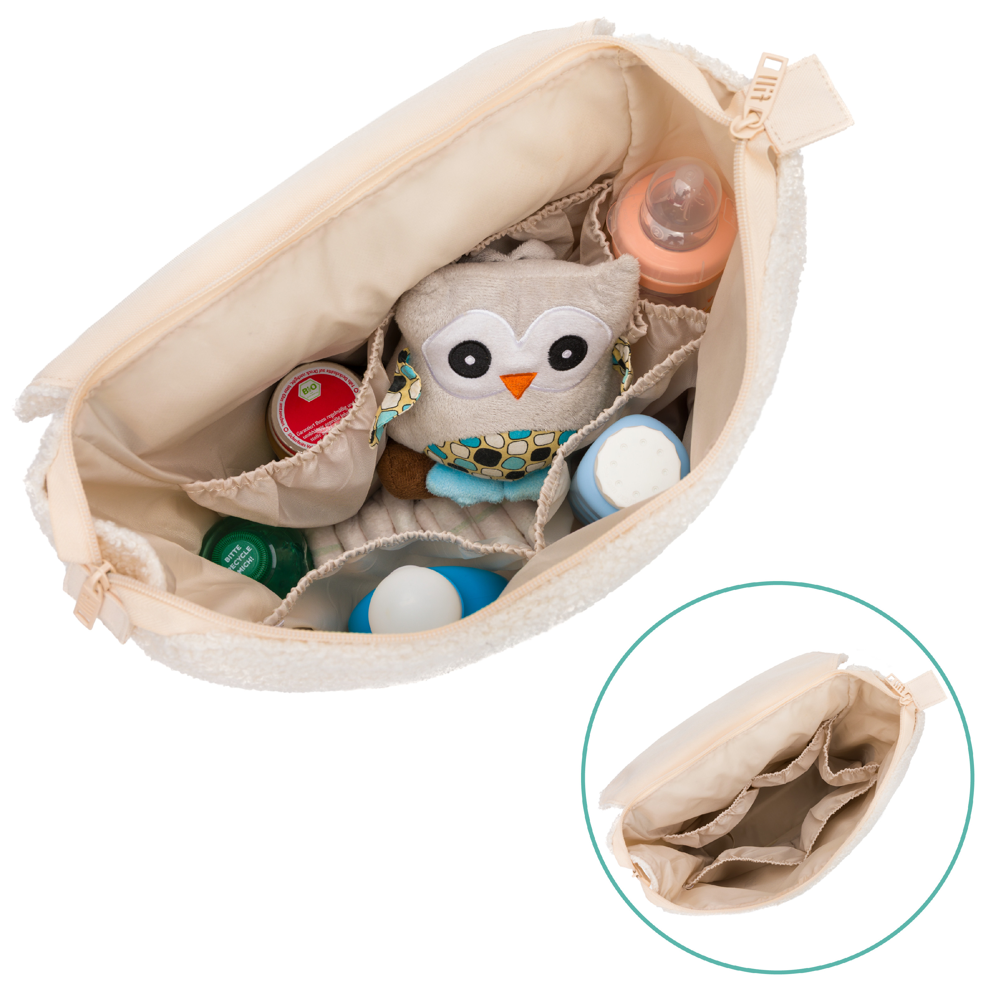 Boční držák na láhev zajišťuje, že máte pití vždy po ruce a zároveň bezpečně uložené. Díky integrované přebalovací podložce můžete své miminko přebalit kdykoli a hygienicky a to, ať jste kdekoli. Pro ještě větší flexibilitu lze batoh pomocí speciálních háčků snadno připevnit ke kočárku. Přebalovací batoh Teddy je navíc vybaven praktickým popruhem na kufr, který usnadňuje cestování.