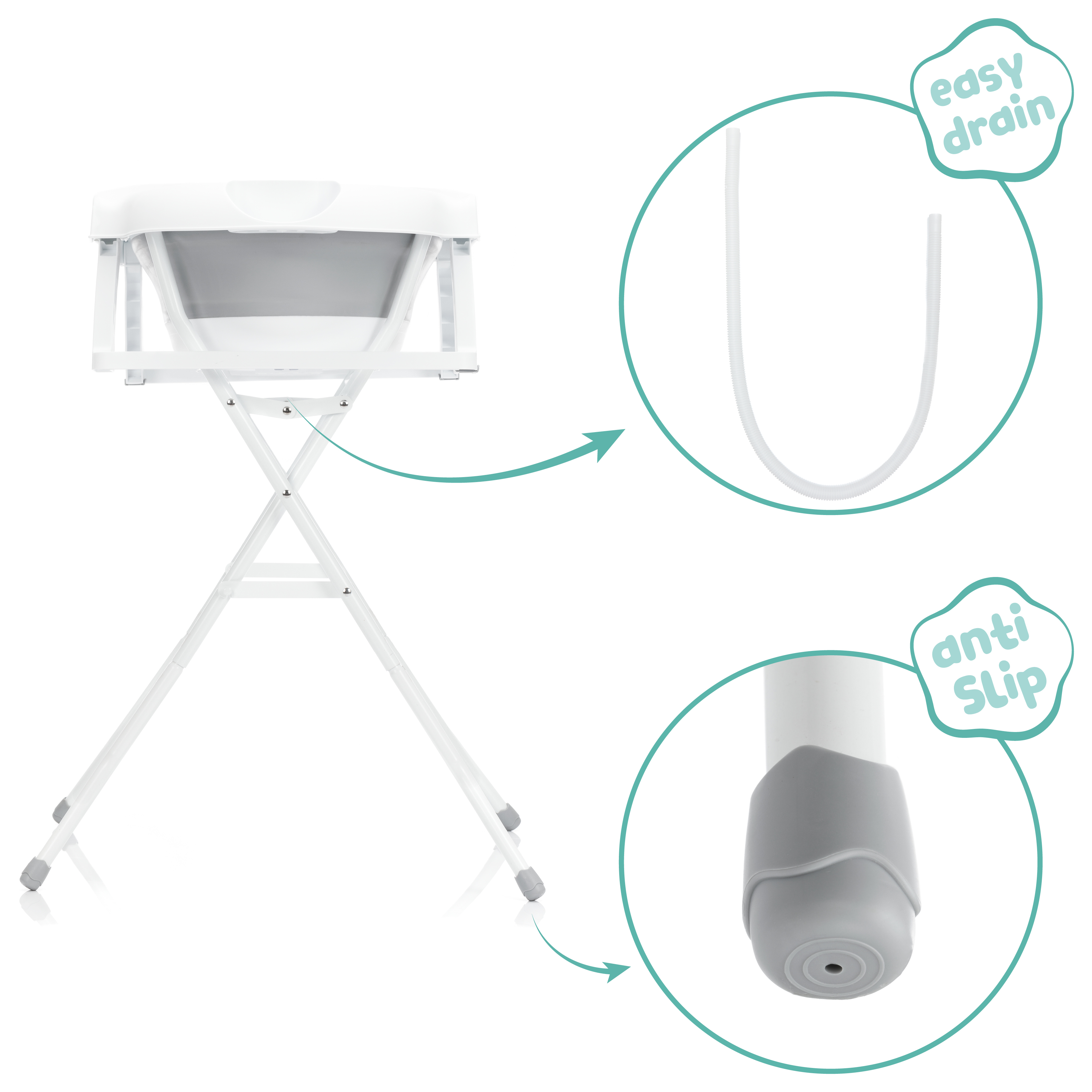 Dobře navržený rám zvedne vaničku do pohodlné výšky, abyste mohli své dítě koupat, aniž byste se museli ohýbat. To nejen chrání vaše záda, ale také vám koupání usnadní a zpříjemní.