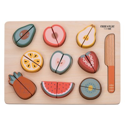 Dřevěný set dřevěná sada ovoce pro skládání a krájení barevné ovoce podporuje rozvoj jemné motoriky a koordinace oko–ruka umožňuje seznámení s různými druhy ovoce a jejich skládáním podporuje představivost a učení hrou vyrobeno ze dřeva vhodné pro děti od 18 měsíců rozměry: 30 × 22,5 × 1,8 cm