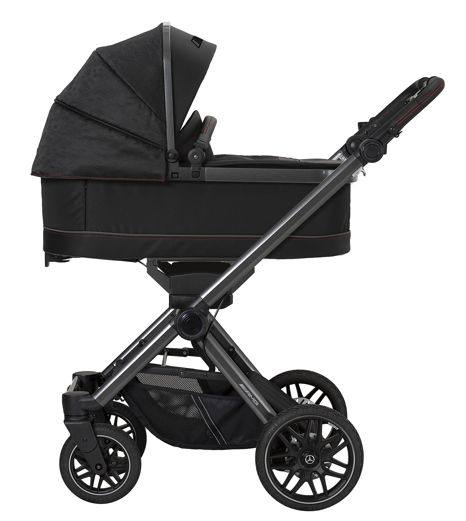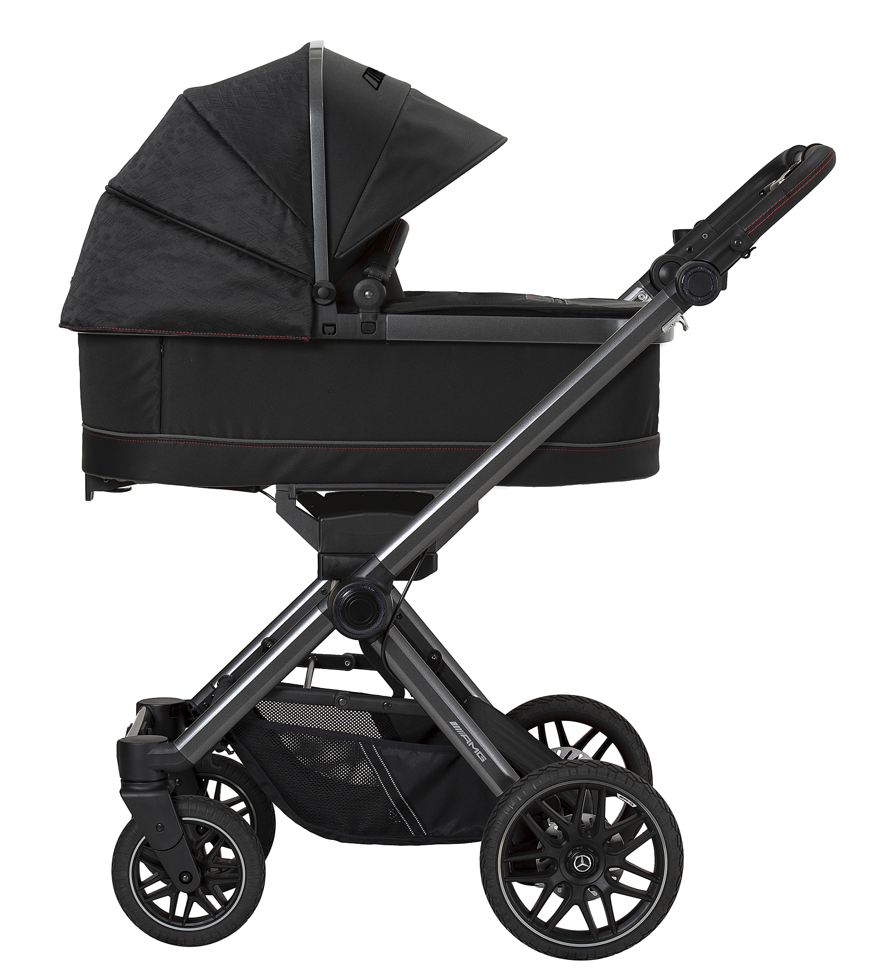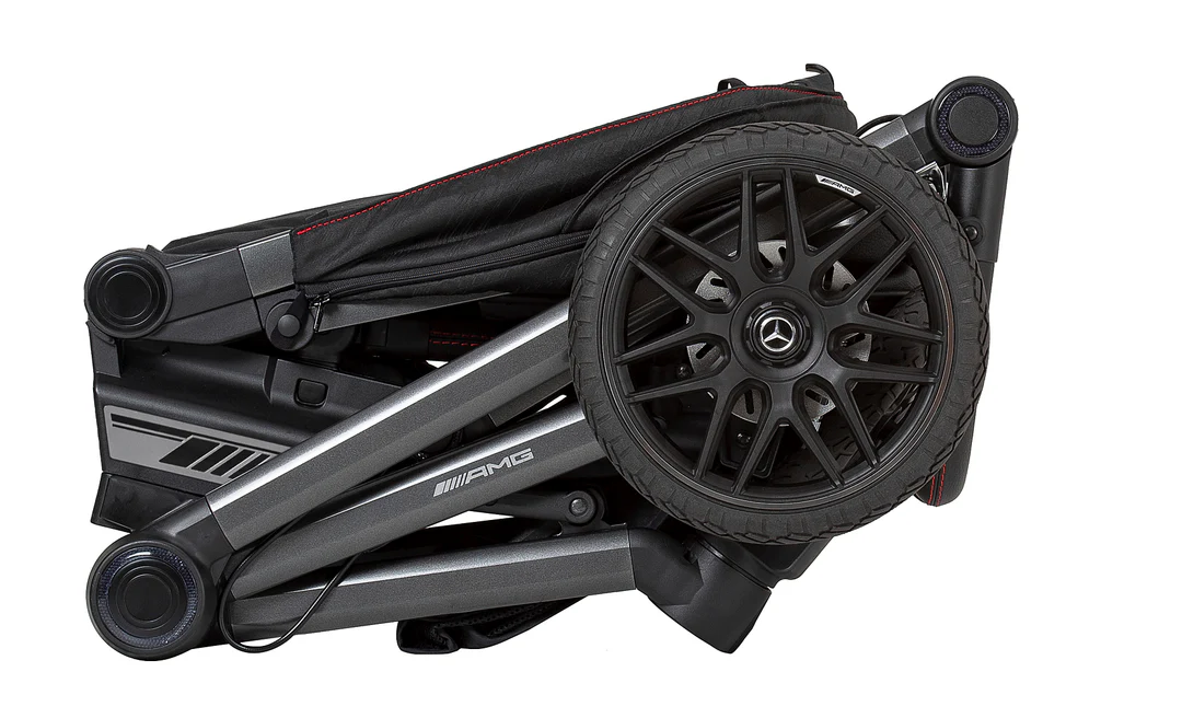 Díky ultrakompaktnímu složení o velikosti pouhých 71 × 58,5 × 32 cm lze kočárek složit i se sportovní nástavbou během pár vteřin. Je ideální na cestování i do menších zavazadlových prostor. Prémiová otočná kola s odpružením si bez problému poradí s jakýmkoli povrchem a ráfky v originálním AMG designu dodávají kočárku nezaměnitelný charakter.