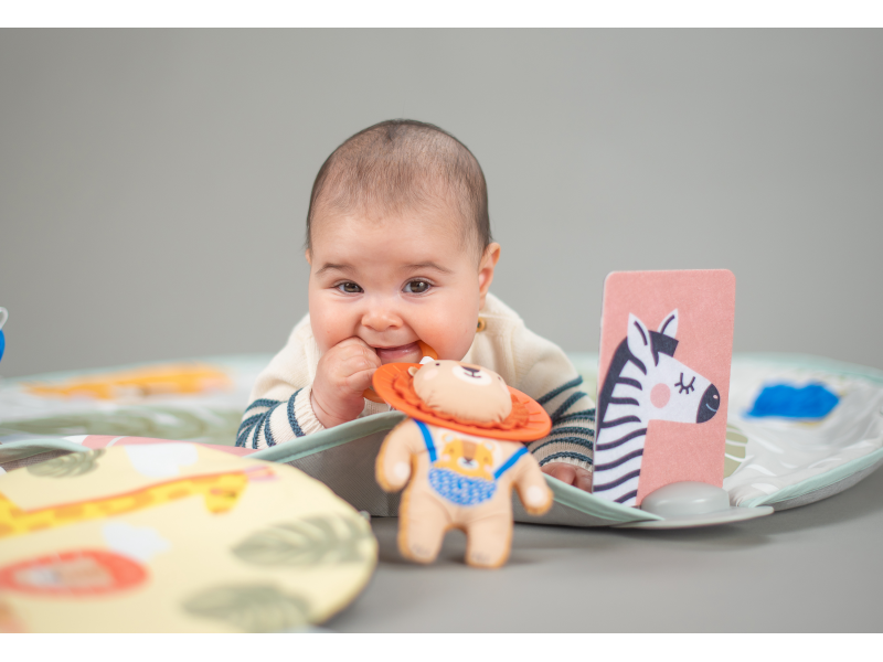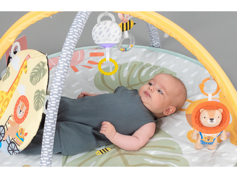 Měkká hrací deka s množstvím různorodých aktivit pro zkoumání a objevování je navržena pro různá věková stádia vývoje dítěte od narození.