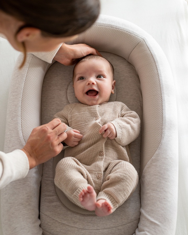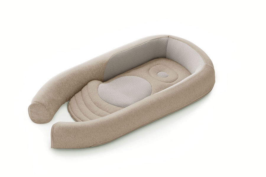 Pohodlí, prodyšnost a perfektní ergonomie: Tvar výrobku usnadňuje udržení polohy na břiše, zatímco tuhá opora na zádech vždy zaručí správnou posturu novorozence. Pevná podpěra je vybavena mikrootvory, které zvyšují prodyšnost, matrace obsahuje nastavitelný válec, který zaručuje přirozenou flexi nohou a v poloze hlavy je oválná podpora, která snižuje riziko plagiocefalie. Je to tím, že napomáhá správnému uzavření zadní fontanely. Použití prodyšných materiálů a přírodních tkanin, jako je bambus a bavlna, zaručují optimální pohodlí a prodyšnost a podporují přirozenou termoregulaci dítěte