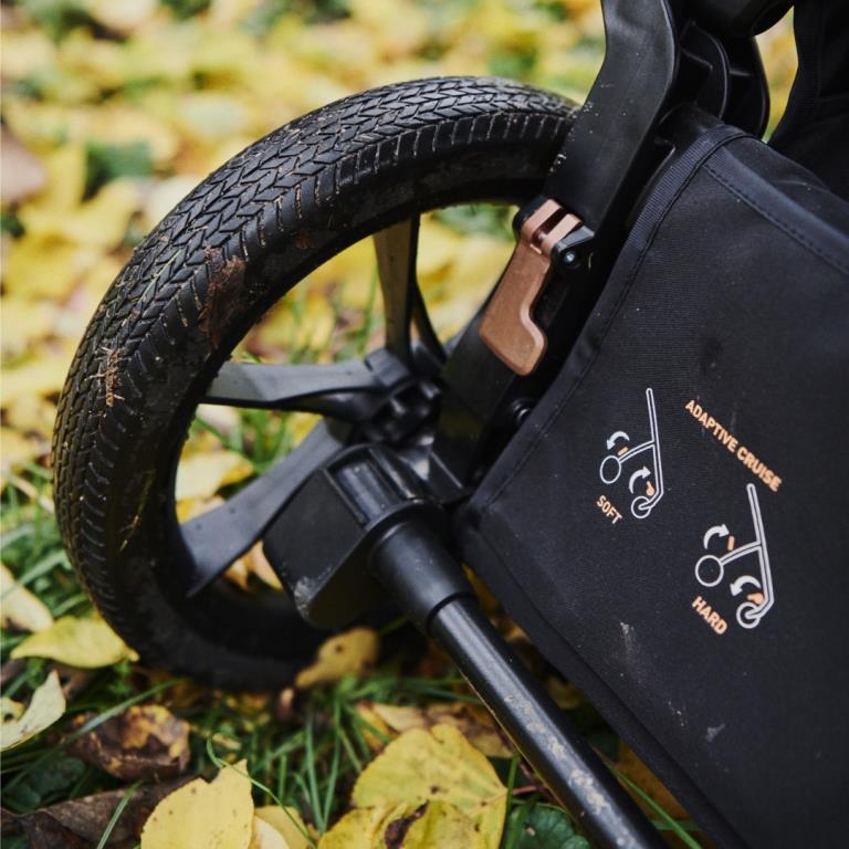 Nový rozměr pohodlí i ochrany Pro podvozek Aptica XT vyvinula Inglesina úplně nová kola. Jsou větší (215 mm přední kola a 290 mm zadní kola), mají speciální tvar, který přispívá k pohlcování drobných rázu od nerovností cesty. Vlastní obruče kol jsou tvořeny vnější tvrdou gumou, zajišťující dlouhou životnost kol, a dvouvrstvou výplní z pěnového polyuretanu, která stejně jako sofistikovaný tvar kol pohlcuje rázy a vibrace od nerovností povrchu cesty. Jízda je pak příjemnější pro dítě i pro rodiče, kterým se do rukojeti kočárku přenáší mnohem méně vibrací.