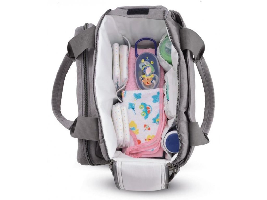 pojme vše, co rodiče pro své dítě na cestách potřebují mít po ruce.