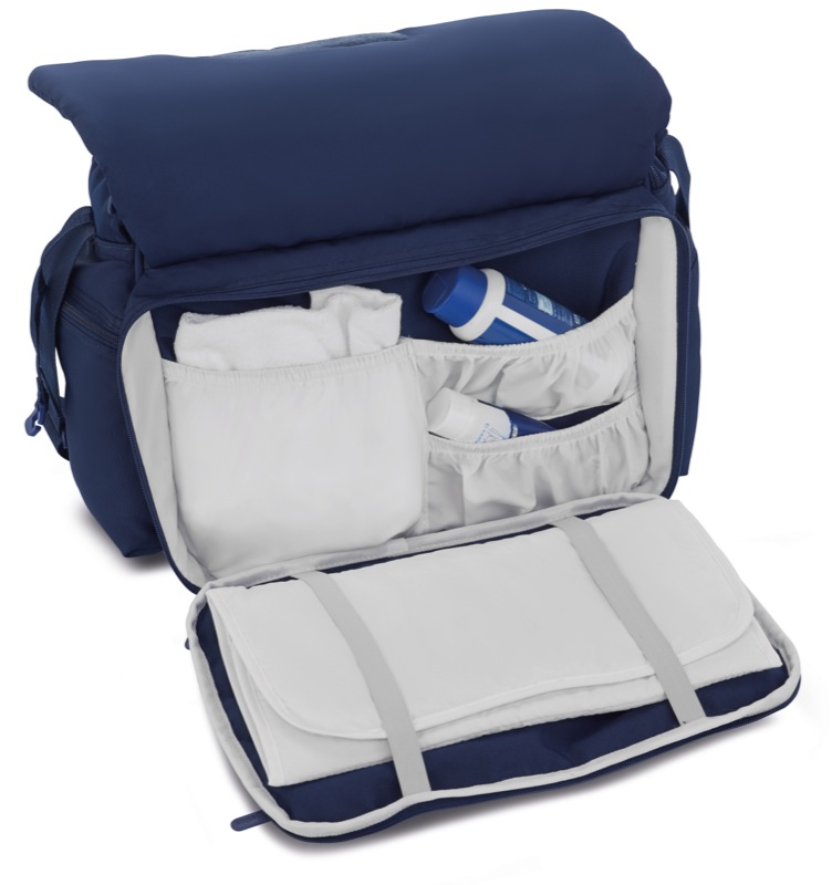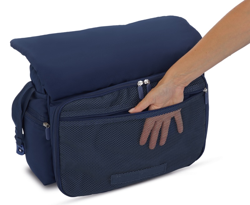Tašky od Inglesiny jsou krásné, praktické a prostorné. Umožňují vám mít s sebou vše co potřebujete pro jakoukoliv situaci: od krátké procházky až po víkend na horách. Funkce: Nylonová podšívka s nepromokavou úpravou, snadno čistitelná Pohodlný široký popruh přes rameno nastavitelný na délku, vybavený dvěma úchyty na rukojeť kočárku. Pro nošení jako taška je opatřena dvěma uchy. Spřažené dvojité zavíraní na zip v horní části tašky. Další úložný prostor v klopě tašky uzavřený zipem. Integrovaná nepromokavá přebalovací podložka z polyesteru ve stejné barvě o rozměrech 58,5×34,5 cm. Pod přední klopou je praktická kapsa ze síťoviny na mokré věci. Uvnitř přední části je další na zip uzavíratelná kapsa vybavená odděleními pro hygienické a praktické uložení potřeb a přebalovací podložky. Izolovaná boční kapsa pro lahvičku. Taška je vypolstrovaná a drží svůj tvar i v naplněném stavu. Technické parametry: Rozměr 48×32×9 cm Prací v ruce na 30°C.