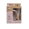 Krásná jídelní sada vyrobená z potravinářského silikonu a bukového dřeva, které snižuje výskyt bakterií na dřevěném nádobí.