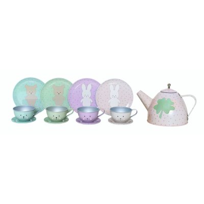 Čajový set s kufříkem Roztomilý čajový set z plechu s přiloženým papírovým kufříkem Kompletní 15dílná sada obsahuje vše potřebné pro dětskou čajovou párty Ideální pro hru na hostinu a pozvání kamarádů nebo plyšáků Podporuje kreativitu, představivost a společenskou hru Praktický podnos umožňuje servírování všech doplňků Stylový design, který zajistí hodiny zábavy Bezpečné provedení dle evropských norem Technické parametry Doporučený věk: od 3 let Materiál: plech, karton Rozměry produktu: 20,5 × 29 × 9 cm Obsah balení: čajová konvička, 4 šálky, 4 podšálky, 4 talířky na dezerty, čajový podnos Certifikace: splňuje evropské bezpečnostní normy EN Bezpečnost: testováno dle EU standardů, používání pod dohledem dospělé osoby