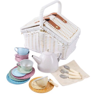 Piknikový košík s čajovým servisem Roztomilý piknikový košík s kompletním 18dílným čajovým servisem Ideální pro pikniky, hru v dětském pokoji nebo venku s kamarády a plyšáky Obsahuje vše potřebné pro čajovou párty: konvička, 4 šálky, 4 podšálky, 4 talířky na dezerty a 4 lžičky Košík se uzavírá malým knoflíkem a snadno se přenáší Podporuje kreativitu, představivost a společenskou hru Stylový design pro hodiny zábavy při hraní na hostinu Bezpečné provedení dle evropských norem Technické parametry Doporučený věk: od 3 let Materiál: plech (čajový servis), nerezová ocel a PP (lžičky), košík: dřevo, bambus, bavlna, plast Rozměry produktu: 20 × 24 × 14,5 cm Obsah balení: čajová konvička, 4 šálky, 4 podšálky, 4 talířky na dezerty, 4 lžičky, piknikový košík Certifikace: splňuje evropské bezpečnostní normy EN Bezpečnost: testováno dle EU standardů, používání pod dohledem dospělé osoby