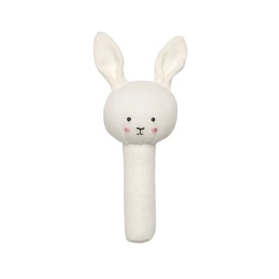 Chrastítko zajíček Roztomilé textilní chrastítko Ergonomická rukojeť vhodná pro malé ručičky Při třesení vydává zábavný zvuk, který podporuje smyslové vnímání dítěte Podporuje rozvoj jemné motoriky a koordinace při uchopení, třesení a zkoumání Ideální jako společník doma i na cestách Technické parametry Doporučený věk: 0+ Rozměry produktu: cca 23 × 12 × 0,2 cm Materiál: polyester, bavlna Bezpečnost: testováno dle evropských standardů, používání pod dohledem dospělé osoby