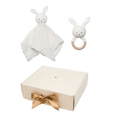 Dárková sada pro miminko s muchláčkem Roztomilá dárková sada obsahující pečlivě vybrané hračky, které se stanou nezbytnými doplňky pro rodinu Muchláček: vyroben z 100% mušelínové bavlny, ideální pro pohodlné odpolední i noční spánky, poskytuje miminku teplo a pohodlí Dřevěné textilní chrastítko: s držátkem z dřeva, stimuluje smysly dítěte a podporuje rozvoj jemné motoriky Jemné a bezpečné materiály vhodné pro novorozence Ideální dárek k narození nebo křtu Technické parametry Doporučený věk: od 0 měsíců Materiál: mušelínová tkanina 100% bavlna, dřevo Rozměry produktu: 7,5 × 24,5 × 20 cm Obsah balení: muchláček, dřevěné textilní chrastítko Certifikace: splňuje evropské bezpečnostní normy EN Bezpečnost: testováno dle EU standardů, používání pod dohledem dospělé osoby