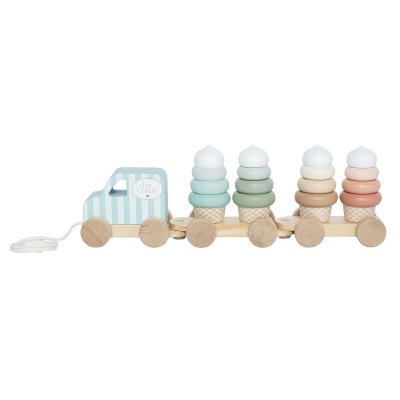 Hračka pro rozvoj motoriky a kreativity Roztomilý tahací vozík s nanukovou tématikou pro malé děti Děti mohou skládat a přemisťovat pastelové nanukové kornouty Podporuje rozvoj jemné motoriky, koordinace rukou a očí a představivosti Perfektní velikost pro malé ruce, ideální pro hravé scénáře – prodej zmrzliny, pikniky nebo volnou hru Vozík je stabilní a bezpečný, lana umožňují jednoduché tahání po místnosti Ideální jako dárek k narozeninám nebo pro malé sběratele dřevěných hraček Technické parametry Doporučený věk: od 18 měsíců Materiál: teakové dřevo, borovicové dřevo (Čína) Rozměry produktu: 12,5 × 36,5 × 7,5 cm Obsah balení: 1 tahací vozík, 4 pastelové skládací nanukové kornouty Certifikace: splňuje evropské bezpečnostní normy EN Bezpečnost: testováno dle EU standardů, používání pod dohledem dospělých