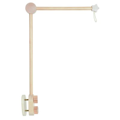 Rameno na kolotoč do postýlky Stylové dřevěné rameno ozdobené hvězdičkami Umožňuje připevnit libovolný dětský kolotoč Snadná montáž na postýlku Vhodné pro všechny typy dětských kolotočů Maximální šířka upevnění: 25 mm Technické parametry Materiál: bukové dřevo, kov Rozměry produktu: 61 × 10 × 8 cm Bezpečnost: používání pod dohledem dospělých
