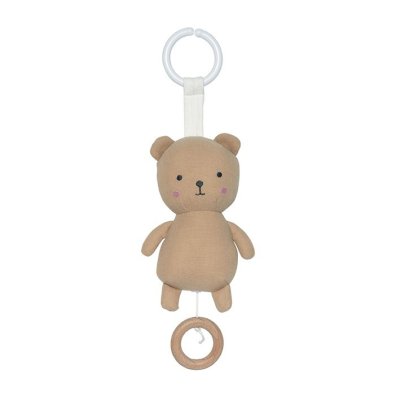 Textilní hudební hračka Roztomilá textilní hračka ve tvaru medvídka s hudební funkcí (ukolébavka) Aktivace hudby jednoduchým zatažením za dřevěný kroužek Snadné připevnění praktickým elastickým poutkem – vhodné pro hrazdičky, kočárky nebo postýlky Hudba uklidňuje dítě a stimuluje smysly během hraní Ideální dárek pro novorozence nebo jako dárek ke křtu Technické parametry Doporučený věk: 0+ Rozměry produktu: cca 23 × 12 × 0,5 cm Materiál: mušelín, 100 % bavlna Bezpečnost: testováno dle evropských standardů, používání pod dohledem dospělé osoby